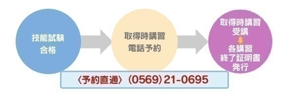 当校では、大型免許、中型免許、準中型免許、普通免許、普通二種免許を取得される方の講習を行っております。講習は予約制となっておりますので、お早めにご予約をお願いいたします。