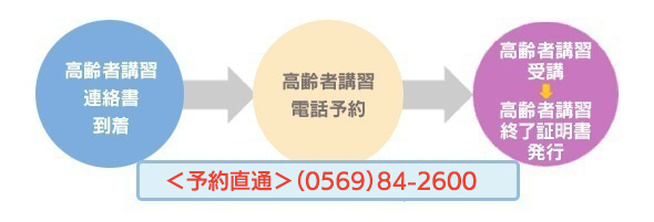 ※誕生日の5ヶ月前から運転免許証の有効期限が切れるまでの間に自動車学校で高齢者講習を受講して下さい。
