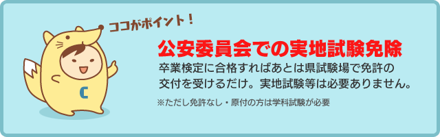 修了検定料 6,000円+税 卒業検定料 6,500円+税 効果測定(免許なし)3,200円+税
