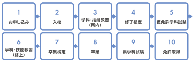 - 免許なし・原付持ちの方は、入校式にご参加いただきます。詳しくはお問い合わせください。