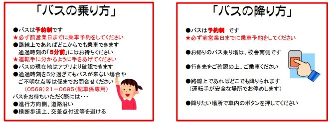 - バスの通過時刻は、交通の状況により多少前後する場合があります。予定時刻の5分前にはお待ちください。