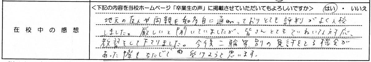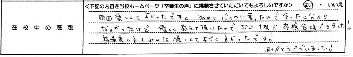普通自動二輪MT H.K.さん 20代 女性